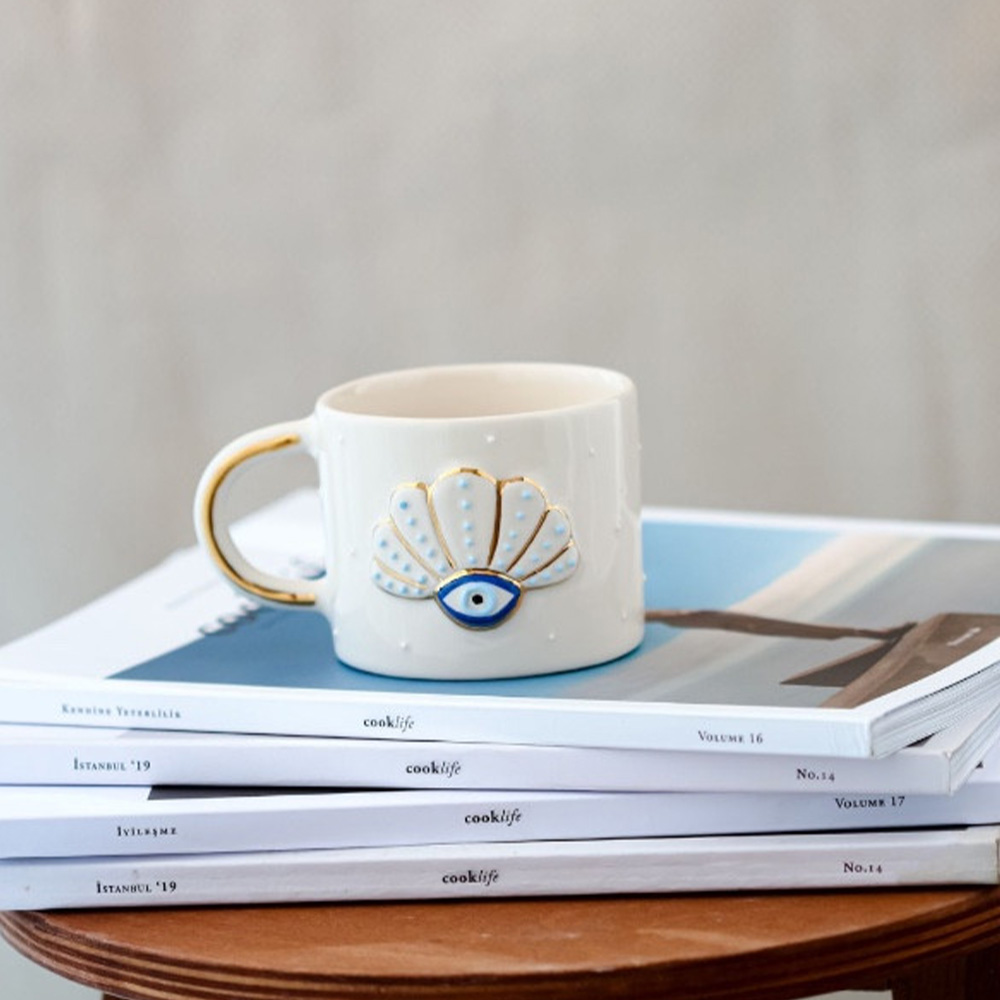 24k Gerçek Altın Dekorlu El Yapımı Alaçatı İncisi Seramik Mug Kupa