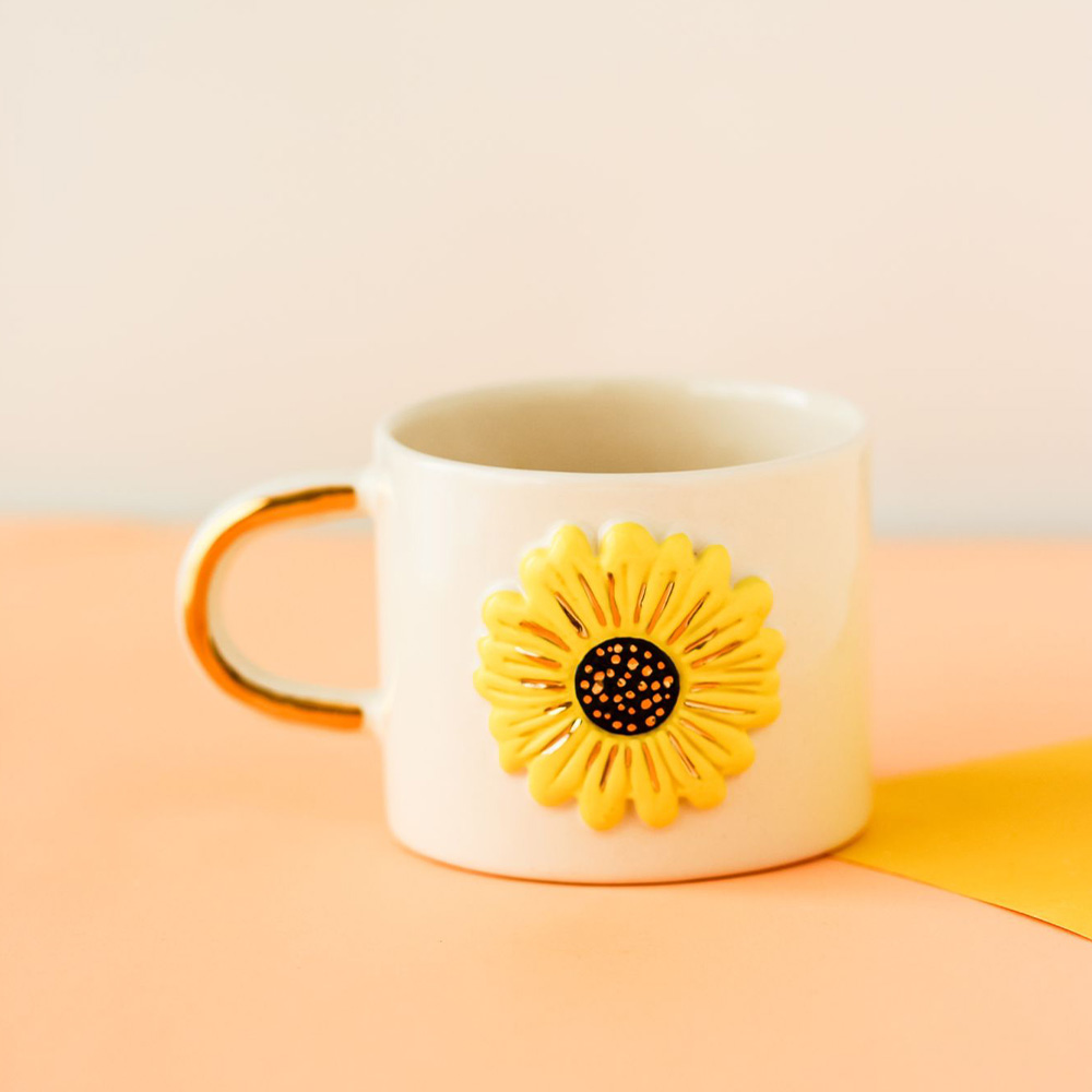 24k Gerçek Altın Dekorlu El Yapımı Papatya Seramik Mug Kupa
