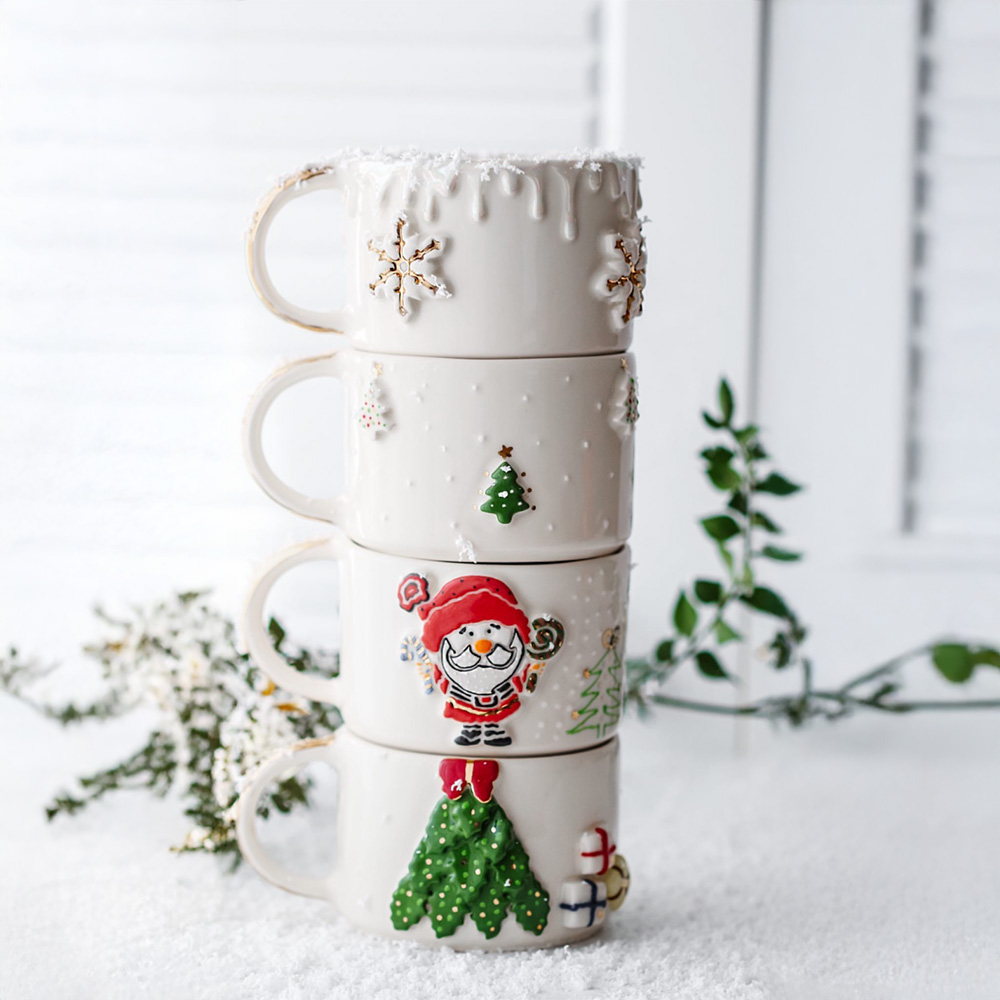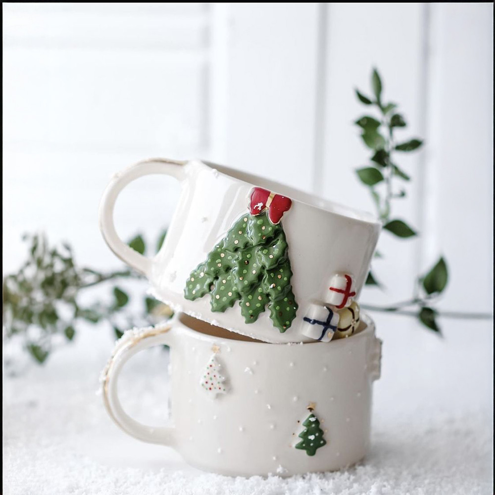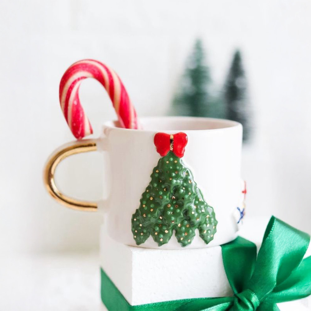 Gerçek Altın Detaylı El Yapımı Yılbaşı Çam Ağacı Seramik Mug Kupa